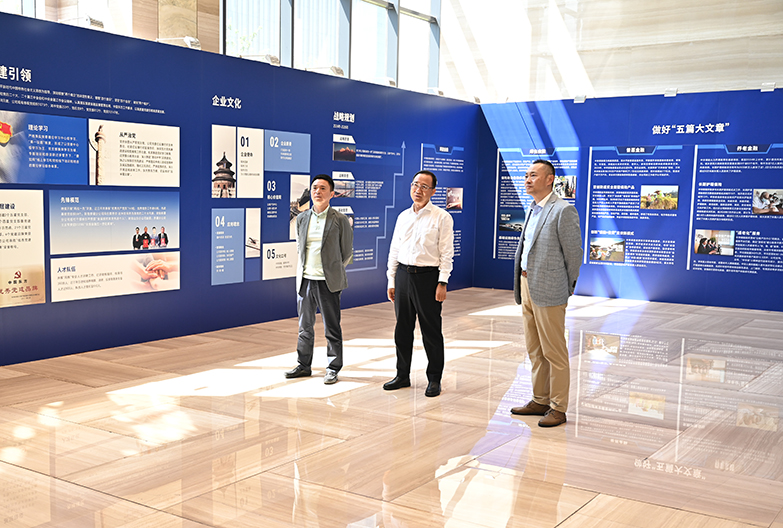 在中华保险集团展厅内,徐飚董事长一行参观了中华保险集团数字化转型成果展,详细了解中华财险与阿里云合作开发的新一代核心业务系统在智能体应用、提升运营效率、增强客户信任与满意度等领域的创新实践。作为国内农险领域的领军企业,中华保险集团展示了其农业科技应用成果,特别是“天—空—地”一体化的遥感监测体系,“气象+保险”服务模式的防雹防霜项目成果等技术在农业保险中的深度应用,展现了其在服务“三农”领域的独特价值。徐飚董事长对中华保险集团在科技创新领域的积极探索和取得的显著成效表示高度赞赏。